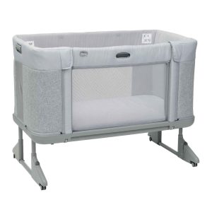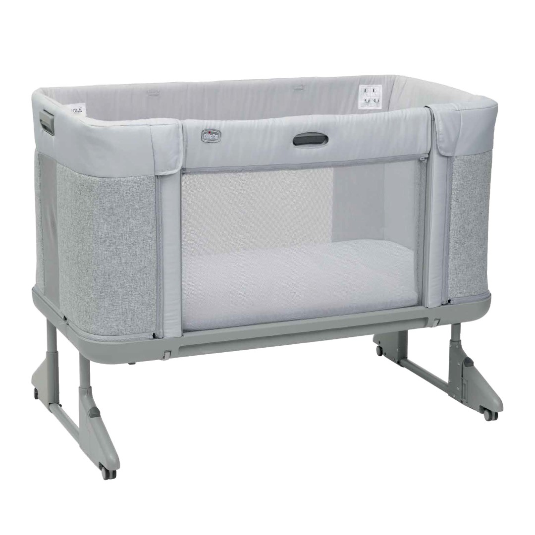 The Next2Me bedside cradle is the sleeping space that Chicco dedicates to the newborn, who can sleep safely next to mum and dad. Next2Me easily attaches to every bed and makes the moment of rest peaceful and serene, a perfect embrace of pampering, cradled by the warmth of the mother. The wraparound shape and the small size are ideal for giving tyour child that sense of protection and the removable side makes breastfeeding easier even at night. The cradle can be easily and securely connected to the bed, it can be adjusted in height and can be transported from room to room in total comfort. Long sleep, wonderful dreams, beautiful smiles: rest in the crib Next2Me Chicco will give tranquillity to the whole family. Simple to hook, ideal for every bed The Next2Me cradle is easy to hook thanks to its intuitive fixing system and to the fold-able side panel. If the hook is secure, it is due to the two straps that allow you to attach the cradle base to each bed, even those with drawers. And not only that: it is also adjustable in height in six positions, in order to have your baby always at hand. Comfortable at night, comfortable to use during the day After a full night full of dreams and tranquillity, the Next2Me cradle can be used unhooked from the bed of mum and dad and taken to the living room or bedroom of your child. Among other things, the cradle is also very easy to move. So you can bring your child with you in a few moments. Comfortable as a nest Equipped with a soft mattress, a delicate cotton interior and a mesh window that ensures better air circulation, the Next2Me cradle is designed to ensure the child has the right comfort at any time of the day. Many accessories for your well-being Next2Me: winter set complete with quilt, quilt cover, sheet with corners and pillowcase, summer set with fitted sheet and corners top sheet and basic set with two sheets with corners, very practical to use in combination with the warm sleeping bag 0-6 m.